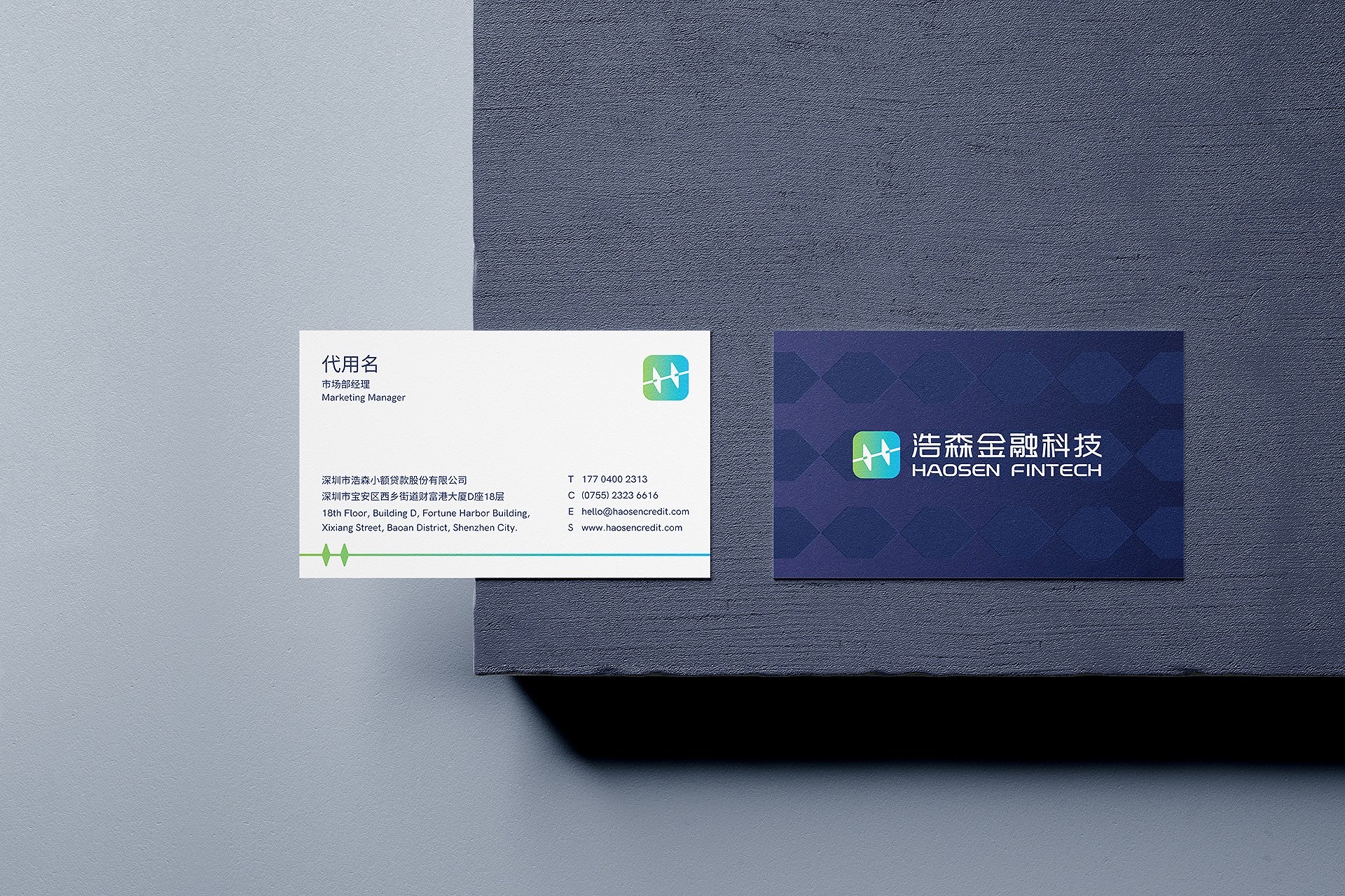 同時,綠色的融入則寓意著綠色金融理念的踐行,突顯了企業(yè)在可持續(xù)發(fā)展中的責任擔當。藍綠漸變的精妙搭配,不僅傳達了對傳統(tǒng)行業(yè)的深耕,更展現(xiàn)了浩森在競爭激烈的金融領(lǐng)域中的創(chuàng)新與引領(lǐng)地位。