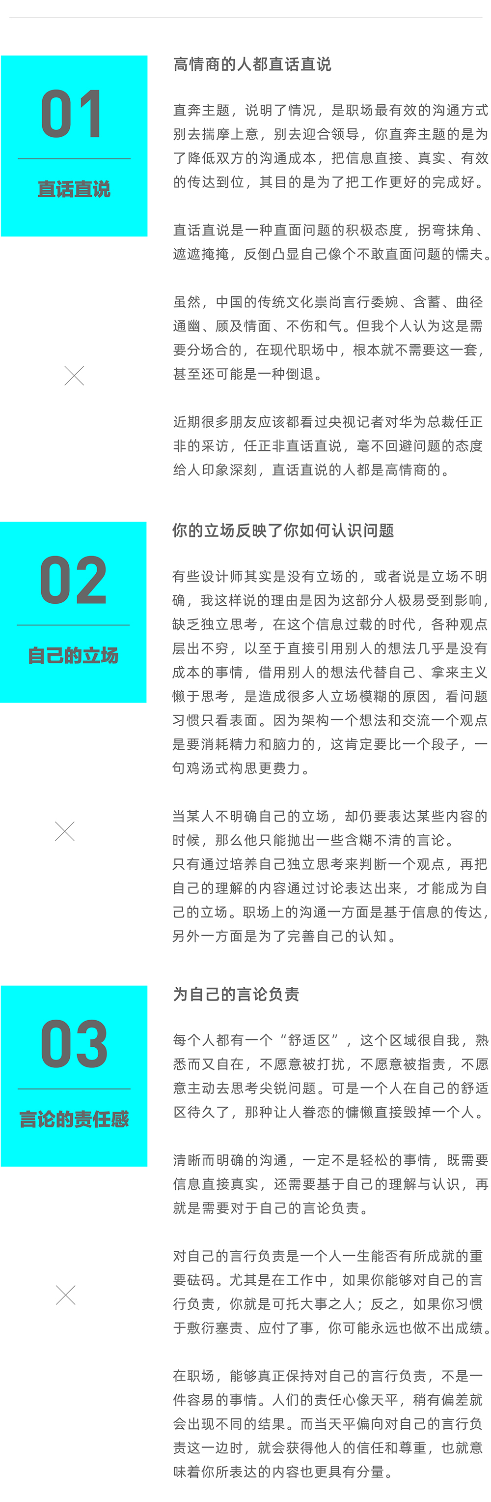 有效提升表達(dá)力是有方法的,首先設(shè)計(jì)師應(yīng)該敢于表達(dá),然后主動(dòng)的去表達(dá),再到清晰的表達(dá),最后是得體的表達(dá)。