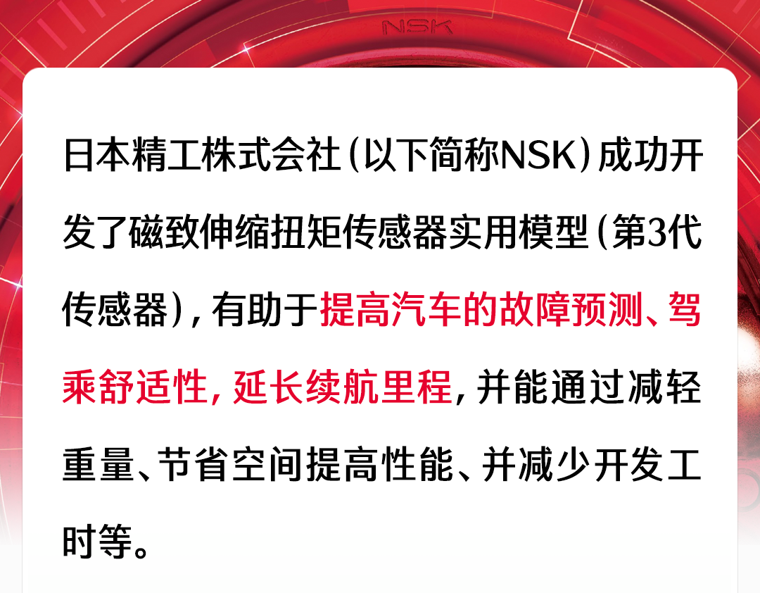 NSK成功開發(fā)車用磁致伸縮扭矩傳感器實用模型