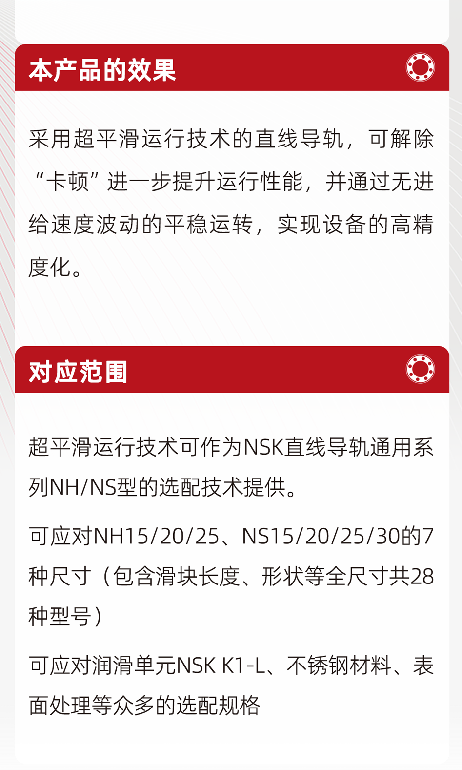 “NSK全球首創(chuàng)可實現精準預測壽命的Micro-UT檢測方法”,可以比以往更精確地計算NSK軸承的壽命?,F在將這個計算方法應用于NSK軸承,提高了作為軸承壽命計算參數之一的基本額定動載荷。例如,通過此次修訂,徑向滾子軸承的基本額定壽命(計算壽命)最多可延長到2倍。