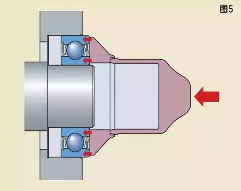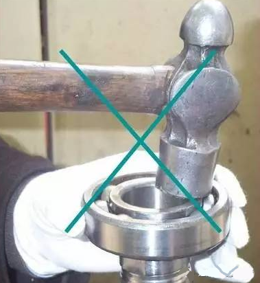 安裝內(nèi)圈(或外圈)過盈配合的軸承,禁止用鐵錘直接敲擊軸承內(nèi)圈(或外圈)端面,這樣很容易把擋邊敲壞。應(yīng)該采用套筒放在內(nèi)圈(或外圈)端面上,用鐵錘敲擊套筒來安裝。