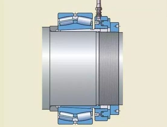 注油法 注油法的工作原理是:液壓油在高壓下通過油孔和油槽,注入軸承和軸徑之間的配合面,形成一層油膜。油膜將配合面分開,使得配合面之間的摩擦大幅減少。這種方法通常用于直接把軸承安裝在圓錐形軸徑上的情況。必須的油孔和油槽應(yīng)是整體軸設(shè)計的一部分。如果緊定套和退卸套,已加工有油孔油槽,這種方法也可用于將軸承安裝在緊定套或退卸套上。